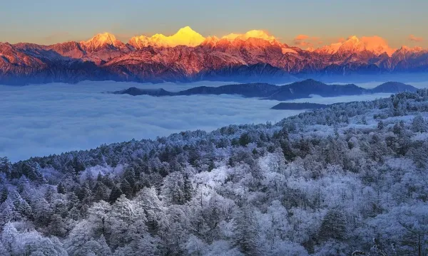 冬日的川西畢棚溝,雪山皚皚,霧氣氤氳。