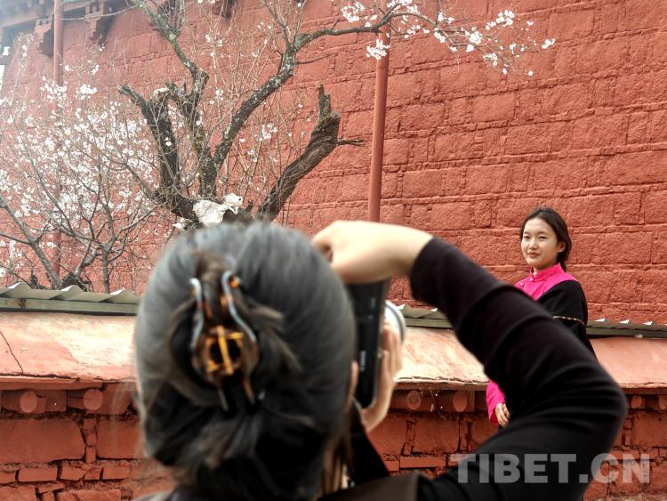 中國藏族網(wǎng)通訊 每年4月,位于西藏拉薩主城區(qū)北郊山坡上的古剎帕邦喀(也稱帕崩崗),環(huán)繞寺院周圍的桃花盛開,引來了諸多當(dāng)?shù)厥忻窕蛴慰图娂娗巴p花、拍照。