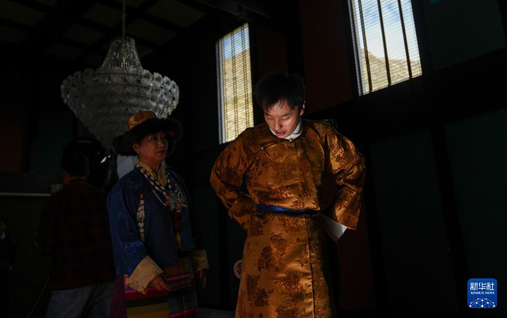 班珠丹塔身著藏裝進行棚拍(9月9日攝)。新華社記者 丁增尼達 攝