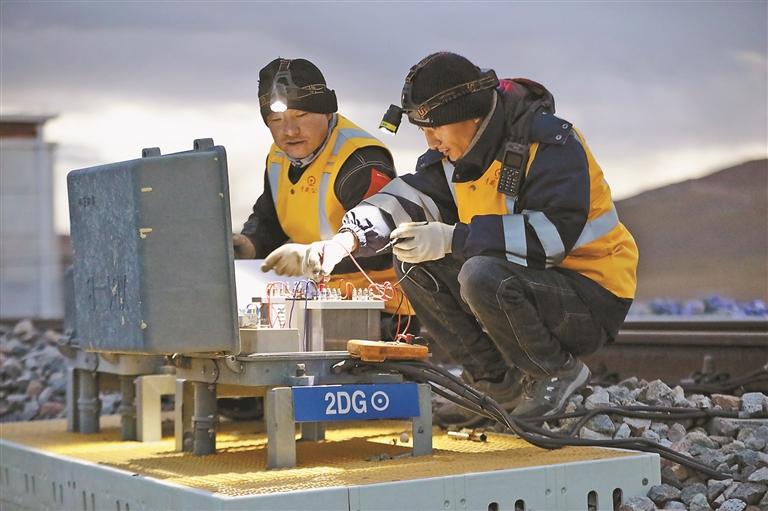 圖為近日,中國鐵路青藏集團有限公司拉薩基礎設施段那曲信號車間扎加藏布信號工區職工在對信號機進行電氣特性測試及數據記錄。本報記者 旦增蘭澤 本報通訊員 拉巴次仁 攝
