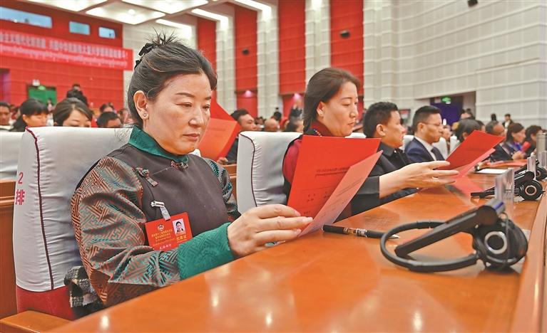 政協委員們認真聆聽工作報告。本報記者 次仁平措 攝