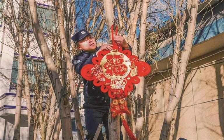 夜幕四合,一天的走訪慰問與便民服務(wù)圓滿結(jié)束,派出所營(yíng)區(qū)里迎來了一場(chǎng)屬于邊關(guān)衛(wèi)士的新春“家宴”。“來來來,搭把手!把中國結(jié)掛高點(diǎn),更顯喜慶!”教導(dǎo)員楊曦淙踩著凳子懸掛中國結(jié),新警吳措多杰在一旁穩(wěn)穩(wěn)扶著梯子;另一邊,民警們?nèi)宄扇海N春聯(lián)、掛彩燈,將營(yíng)區(qū)裝點(diǎn)得喜氣洋洋、年味十足。