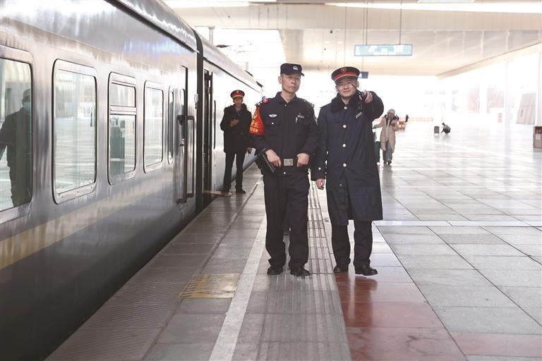 “小伙子,行李盡量往貨架里面放,避免剎車時掉落。”“大姐,單獨出行晚上睡覺把貴重物品收好,有事隨時喊我。”他反復提醒著,遇到行動不便的旅客,便主動上前幫忙搬運行李。單警值乘的勞動強度不小,但他始終保持著挺拔的姿態,“多跑一趟、多提醒一句,旅客的安全就多一分保障。”