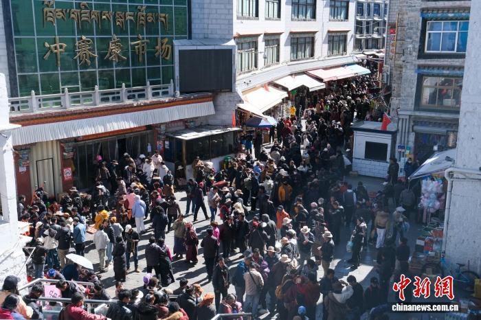 2月13日,拉薩傳統年貨市場沖賽康周邊人流如織。中新社記者 江飛波 攝