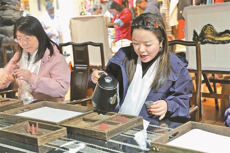 游客們走進(jìn)雍布拉康與昌珠寺,探尋西藏第一座宮殿的深厚歷史底蘊(yùn),欣賞巧奪天工的藏式建筑藝術(shù)。在“雅礱里”文化藝術(shù)街區(qū)非遺展館,傳統(tǒng)編織、唐卡繪畫、藏文書法、民族服飾等非遺技藝與文創(chuàng)精品集中亮相,吸引了眾多游客駐足體驗(yàn)。
