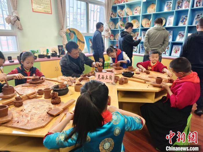 圖為學生學習尼西黑陶制作。中新網記者 韓帥南 攝