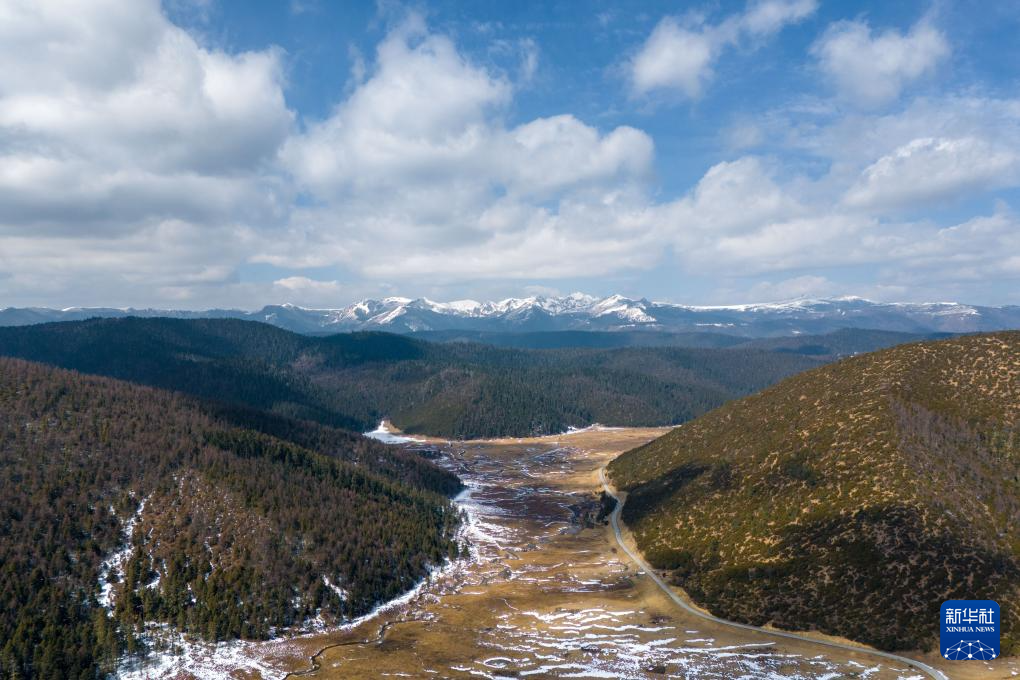 這是2月23日拍攝的普達措景區風光(無人機照片)。新華社 彭奕凱 攝