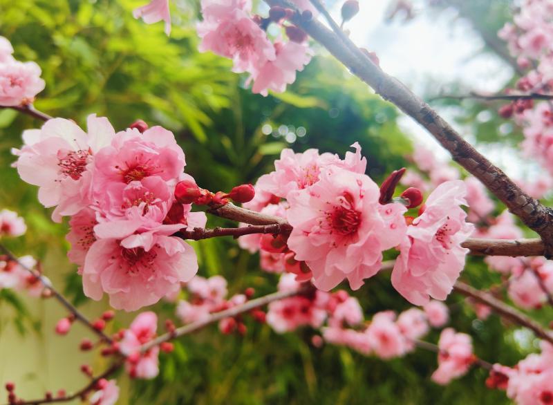 春風拂面的四月,各種花兒竟相綻放。連日來,香格里拉市城區景觀帶的榆葉梅進入盛放期。粉色的花兒充滿了詩意與浪漫。