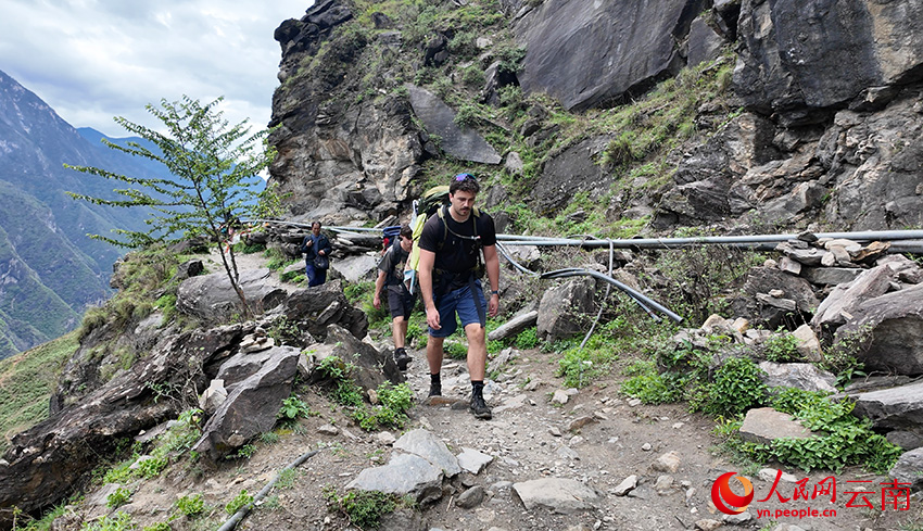 外國游客在虎跳峽徒步。人民網記者 莊志斌 攝