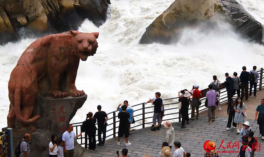 虎跳峽氣勢磅礴的峽谷景觀吸引各地的游客前來觀光打卡。人民網記者 莊志斌 攝