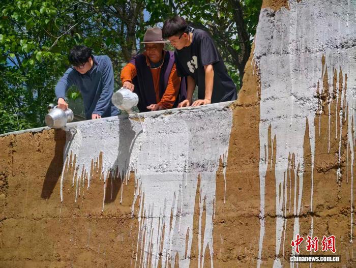 游客在鄉城體驗白色灌禮。呂楊 攝
