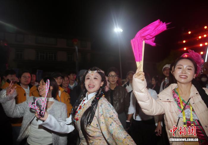 9月27日晚,演員與游客大聯歡。中新社記者 黃興鴻 攝