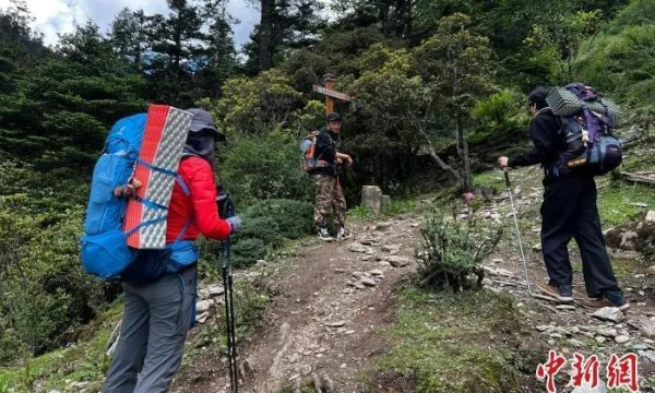 盛夏,香格里拉尼汝村海拔4000米的南寶牧場高山杜鵑競相盛開,吸引著國內(nèi)外徒步愛好者紛至沓來。蜿蜒的山道上,29歲的村民央卓七林正帶領(lǐng)兩名徒步愛好者前行,一邊引路,一邊介紹沿途多個氣候帶的生物群落。