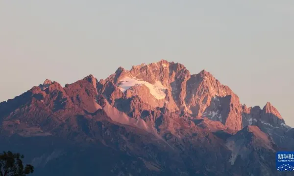 近日,云南迪慶藏族自治州梅里雪山出現(xiàn)日照金山壯美景觀(guān)。當(dāng)?shù)谝豢|陽(yáng)光穿透云層,灑在雪山之巔,整個(gè)山峰仿佛被鍍上了一層金光,熠熠生輝。