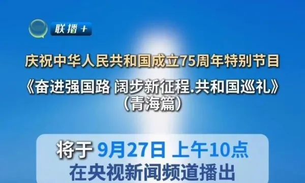 【慶祝中華人民共和國成立75周年特別節目】《奮進強國路 闊步新征程.共和國巡禮》(青海篇)將于9月27日上午10點在央視新聞頻道播出