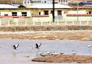 4月17日,記者拍攝的曲麻萊縣城內一處人工湖上水鳥戲水的和諧畫面。 本報記者 張地委 攝... [詳情]