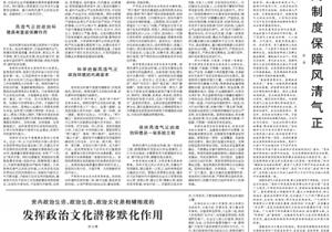 風(fēng)清則氣正,氣正則心齊,心齊則事成。習(xí)近平總書記在全國政協(xié)新年茶話會(huì)上強(qiáng)調(diào):“著力保持平穩(wěn)健康的經(jīng)濟(jì)環(huán)境、風(fēng)清氣正的政治環(huán)境、國泰民安的社會(huì)環(huán)境”。風(fēng)清氣正的政治環(huán)境具有什么樣的重要作用?如何才能保持風(fēng)清氣正的政治環(huán)境?本版3篇文章圍繞這些問題進(jìn)行闡述。... [詳情]