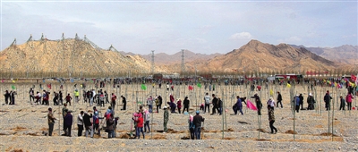 初春的德令哈乍暖還寒,義務植樹現場到處都是忙碌的身影。干部群眾一起將一棵棵樹苗植入樹坑,鏟土填坑、揮鍬培土、提水澆樹,每栽下一棵樹都認真地扶正樹苗、踩實新土。人多力量大,一番忙碌過后,近萬棵栽好的河北楊樹苗在明媚的陽光下展露勃勃生機。州職校職工王景一邊栽樹一邊說:“平時工作很忙,能參加義務植樹活動既鍛煉了身體,又為改善生態環境貢獻了自己的一份力量,今后要多參加這種公益活動。”