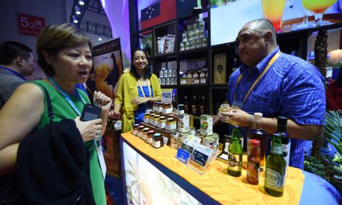 11月8日,在首屆中國國際進口博覽會7.2展館,青海企業與國外參展商交流洽談。 中國藏族網通訊 首屆中國國際進口 ......