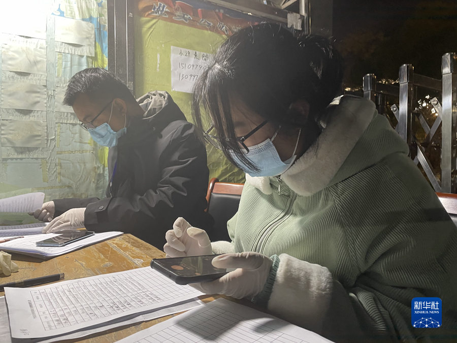 10月21日,青海海東市平安區,嚴馨玉(右)在進行登記工作。 新華社記者 耿輝凰 攝