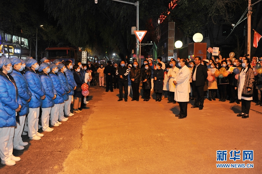 10月24日,青海省人民醫(yī)院職工在醫(yī)院大門前等待返程醫(yī)療隊員。新華網發(fā)(朱建軍 攝)