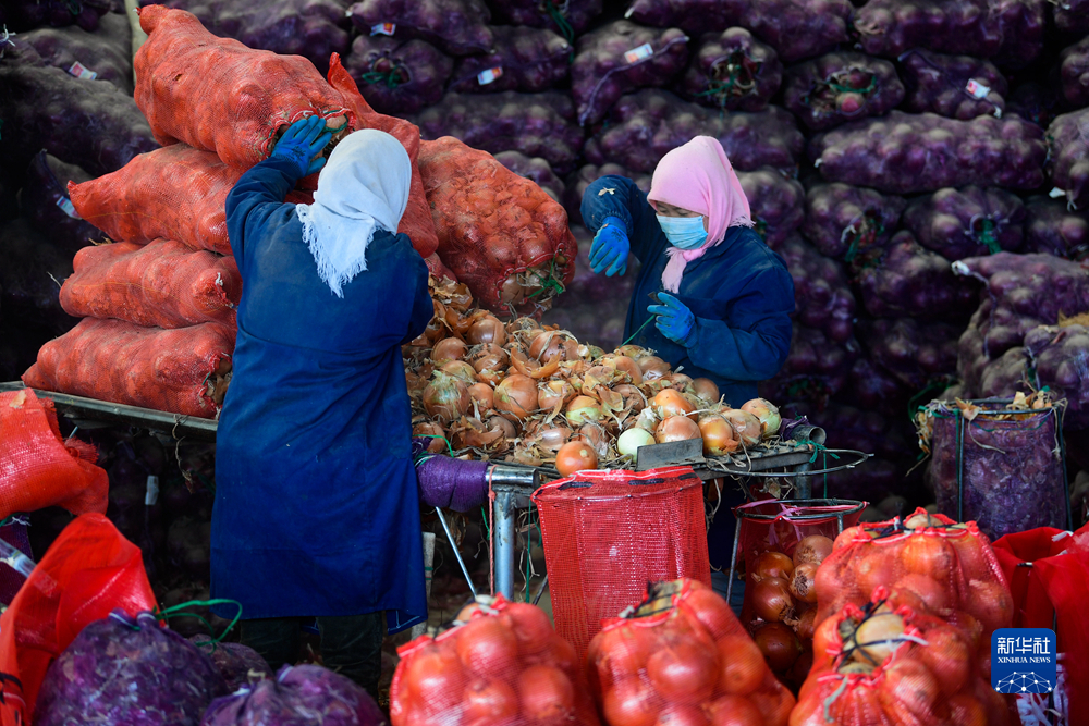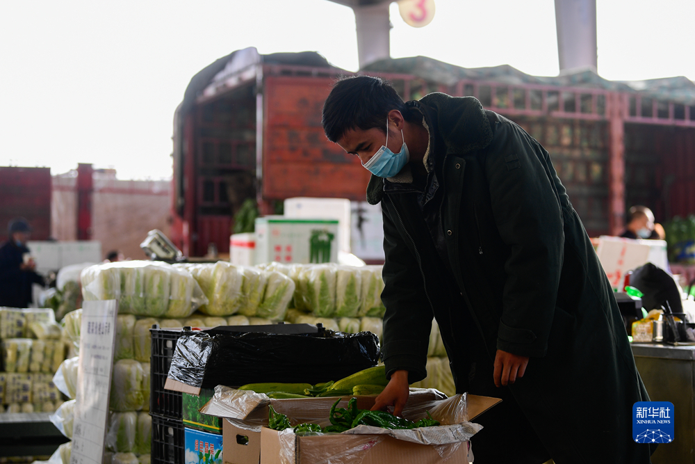 10月31日,商戶在西寧青藏高原農副產品集散中心揀選蔬菜。新華社記者 張龍 攝