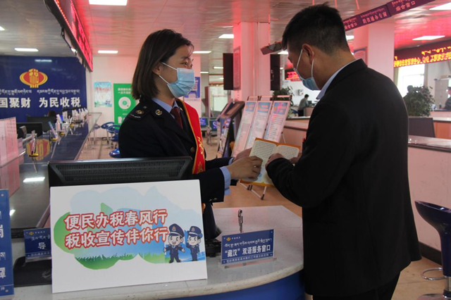 青海省黃南州辦稅服務廳專崗宣傳稅費政策。黃龍攝