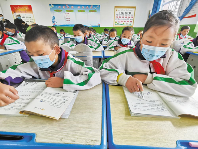 2021年“5·22”瑪多地震后,當地以最快速度復課復學,圖為瑪多縣小學學生正在上課。李興發攝