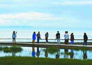 8月11日,記者一行走進海北藏族自治州的青海湖仙女灣景區,一望無際的湖面與天邊自然交匯,宛如鏡面的湖泊、自由嬉戲的禽鳥、倒映著碧藍的天空透露著原生態之美。仙女灣是青海湖裸鯉、漁鷗、棕頭鷗、斑頭雁等數十種鳥類的重要棲息地,每年春、秋遷徙期有大量水鳥在此停歇,同時這里也是魚的家園、鳥的天堂。本報記者 董志勇 李慶玲 石成硯 欒雨嘉 攝...  [詳情]