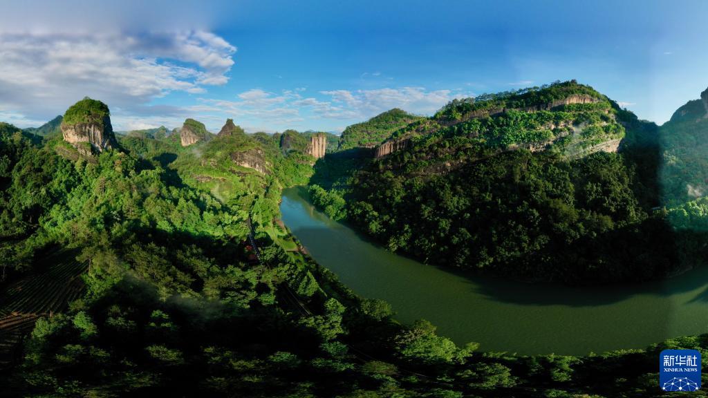 這是武夷山國(guó)家公園九曲溪兩岸景觀(6月6日攝,無(wú)人機(jī)照片)。新華社記者 姜克紅 攝