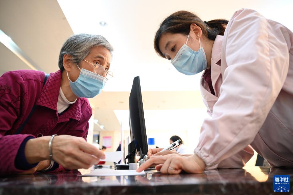 福建省三明市第一醫(yī)院醫(yī)保辦工作人員(右)向前來(lái)咨詢藥品報(bào)銷(xiāo)問(wèn)題的居民講解相關(guān)政策(2020年11月18日攝)。新華社記者 姜克紅 攝