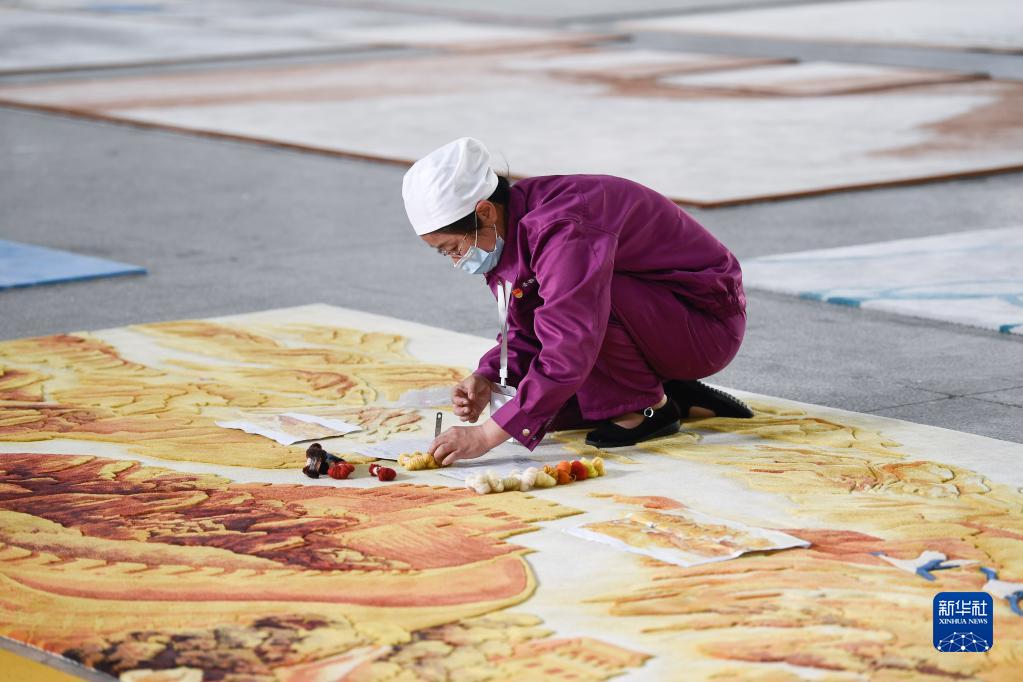 2021年6月7日,在青海圣源地毯集團有限公司生產車間內,工人在制作藏毯。新華社記者 張龍 攝