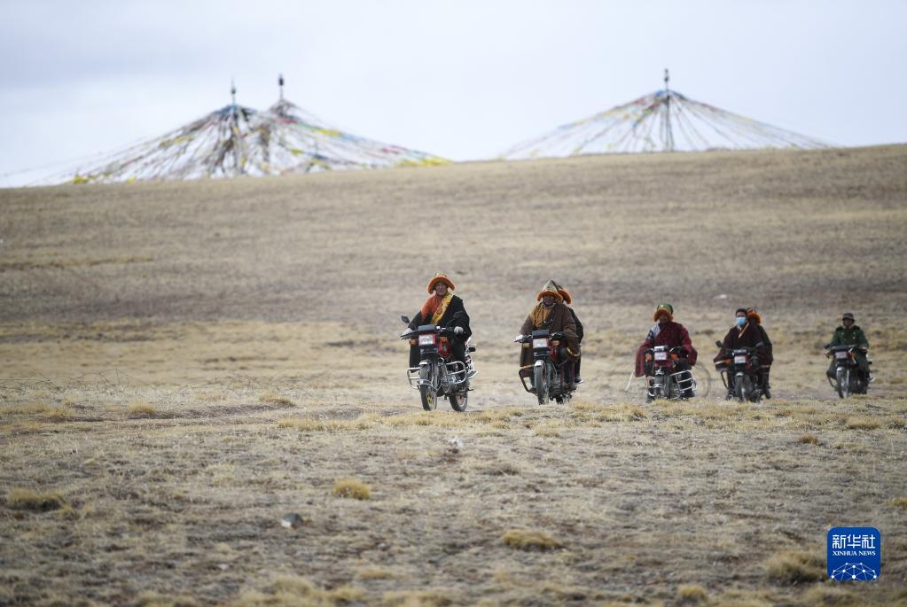 2022年4月21日,在青海省玉樹藏族自治州曲麻萊縣麻多鄉約古宗列曲附近,生態管護員在巡護。約古宗列曲位于青海省玉樹藏族自治州曲麻萊縣麻多鄉,這里是三江源國家公園的核心區。三江源國家公園在生態保護第一的前提下,建立“一戶一崗”生態管護公益崗位機制,園區內每戶有1名生態管護員,他們共同守護著一江清水。新華社記者 張龍 攝
