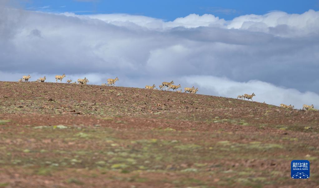 這是在可可西里卓乃湖區域拍攝的藏羚羊(2020年7月7日攝)。新華社記者 張龍 攝
