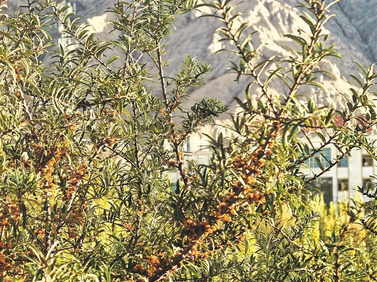 廠區內沙棘綴枝。記者 王菲菲 攝