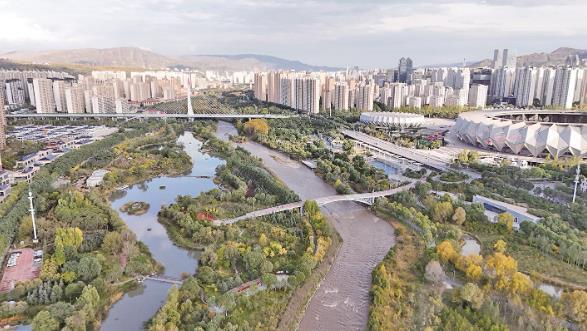 西寧湟水國家濕地公園一角。
