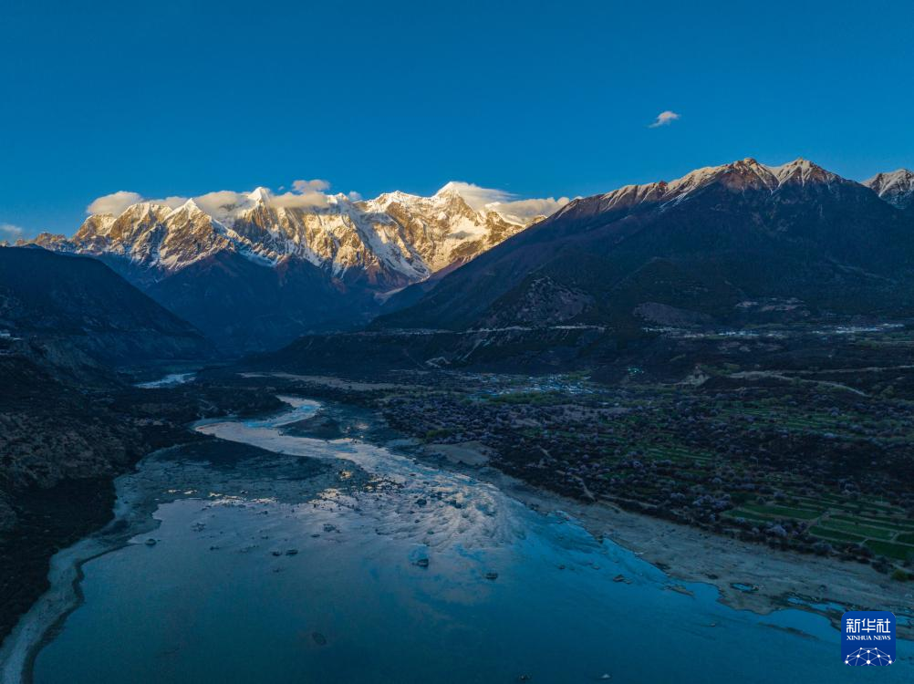 這是在索松村附近拍攝的南迦巴瓦峰夕照(4月1日攝)。新華社記者 孫非 攝