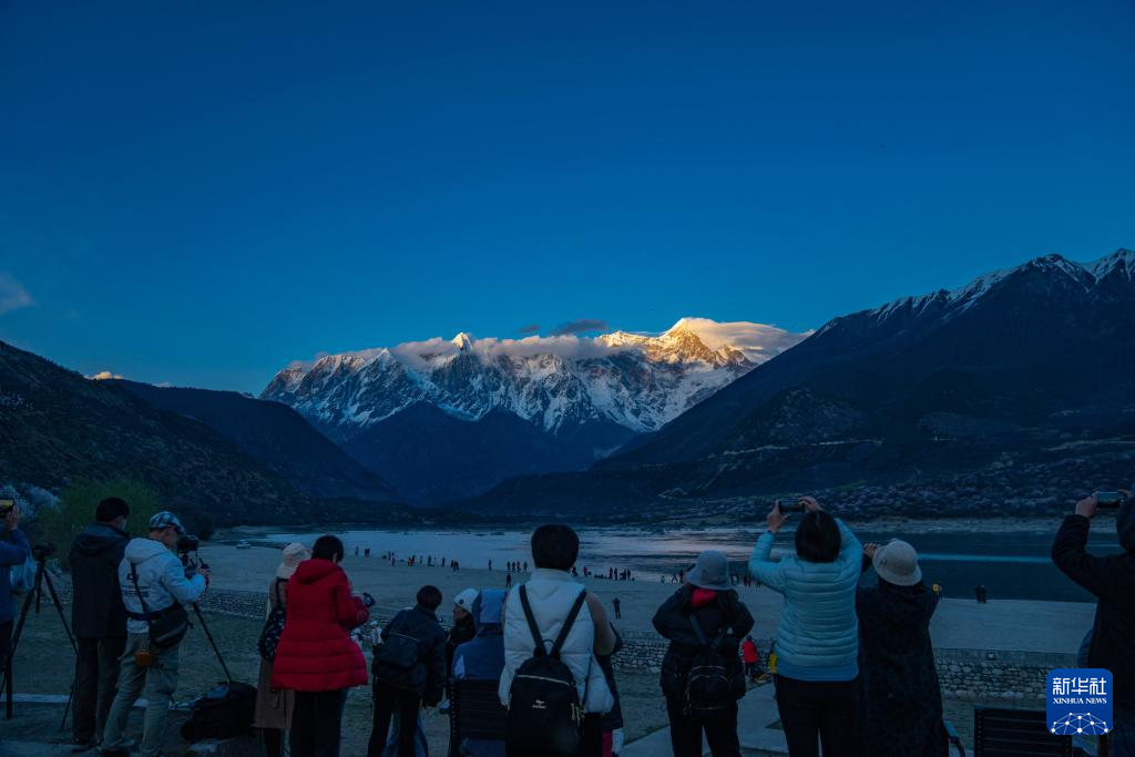 西藏林芝市米林市索松村是欣賞南迦巴瓦峰景觀的最佳位置之一。這里面向南迦巴瓦峰,腳下是蜿蜒的雅魯藏布江。林芝市第二十一屆桃花旅游文化節期間,雅魯藏布江邊的桃花次第盛開,與雪山、大江相襯,獨特的景色吸引著各地游客慕名而來,共赴一場“桃花之約”。