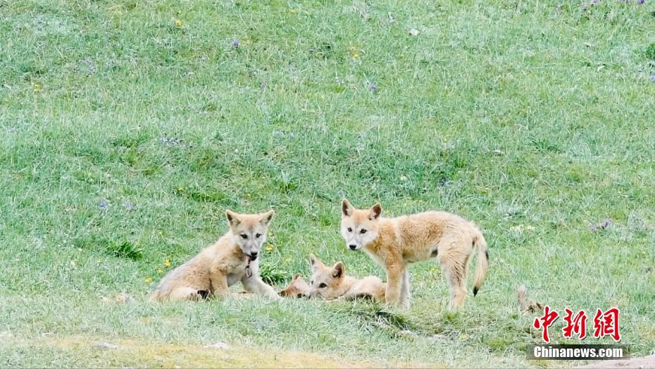圖為成群藏羚羊在草地上漫步。宗布爾 攝