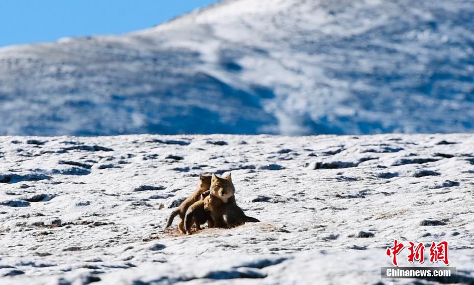 圖為藏狐在雪地里玩耍。宗布爾 攝