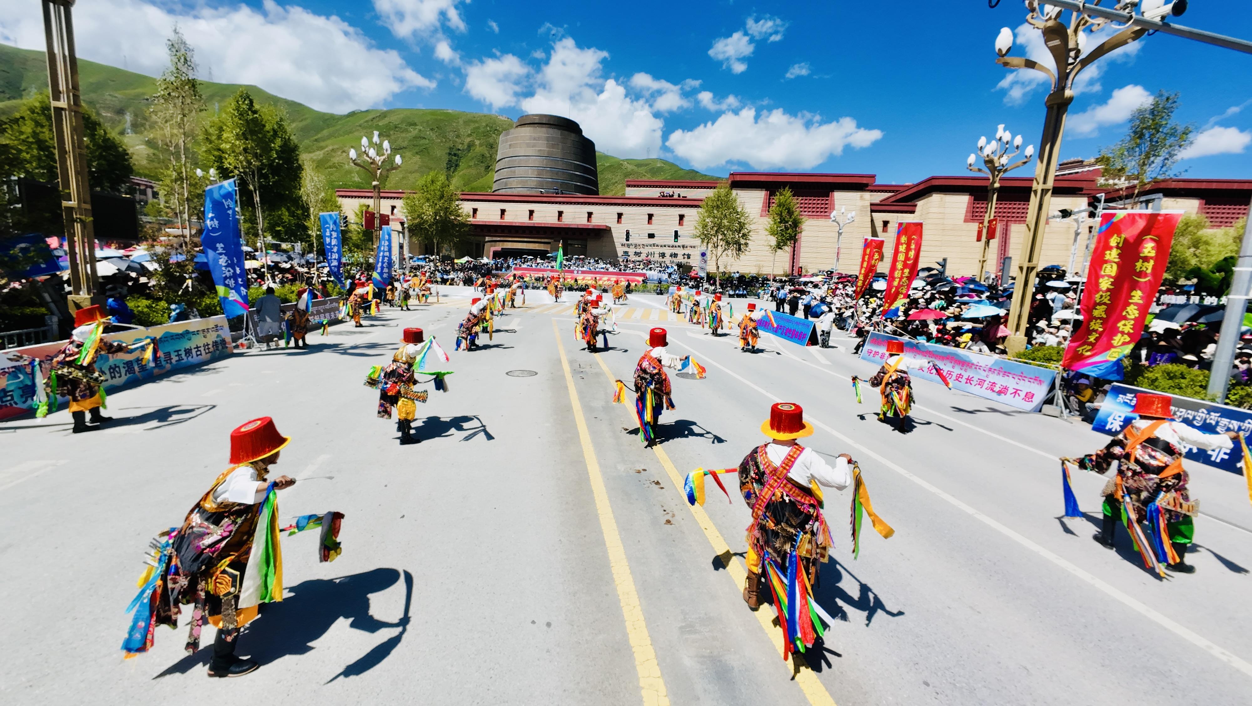 湛藍的天空映襯著高原的江河,潔白的雪山滋養無垠的牧場,又是一年高山流水縈繞著牧歌的時節。7月24日,一場行走的非遺展在青海省玉樹藏族自治州玉樹市街頭上演。“瀟灑的康巴人”——國家級藏族文化(玉樹)生態保護實驗區建設成果非遺巡演現場,瀟灑多彩的玉樹民族民俗文化在此呈現。