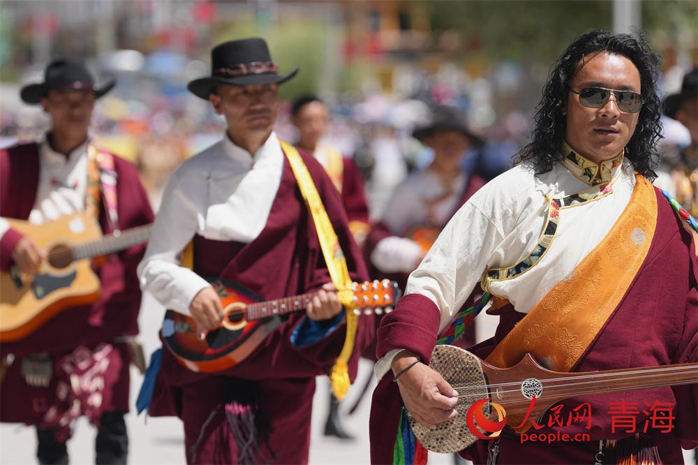 巡演現場,玉樹馬術方隊、康巴漢子方隊、伊舞方隊、藏族彈唱方隊、格仲服飾方隊、游牧方隊、玉樹州非物質文化遺產傳承人方隊等輪番登場,形式多樣的非遺展演為廣大游客和當地群眾帶來了一場視覺盛宴。