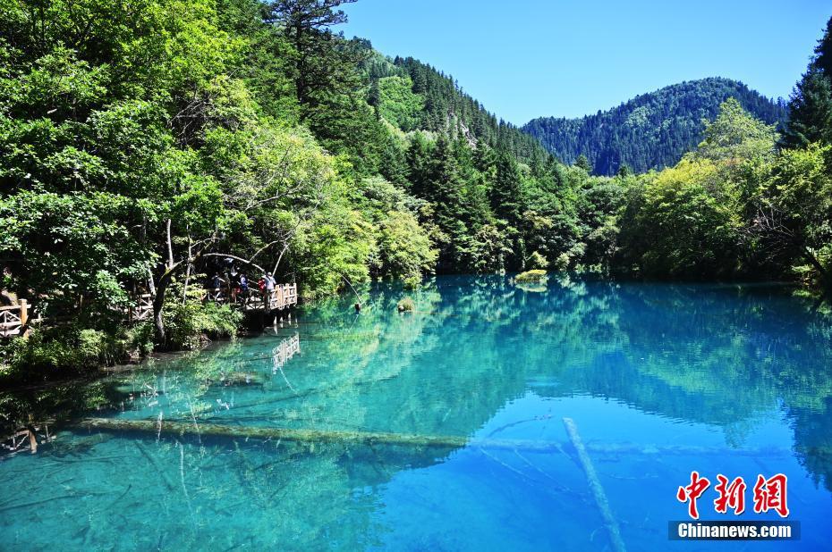 中國藏族網通訊 8月13日,世界自然遺產地九寨溝景區風景如畫,吸引眾多游客觀光游玩。