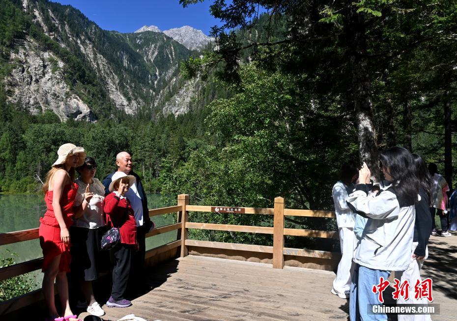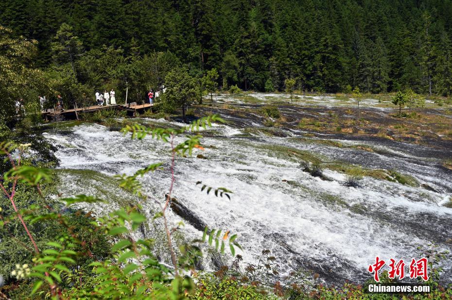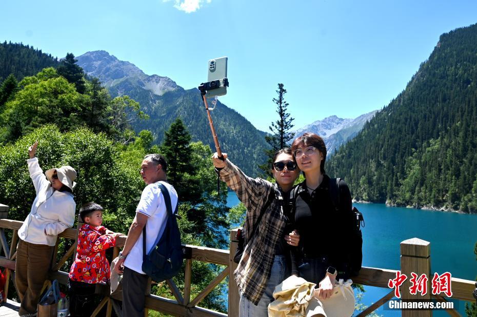 圖為游客在九寨溝景區拍照留念。中新社記者 安源 攝