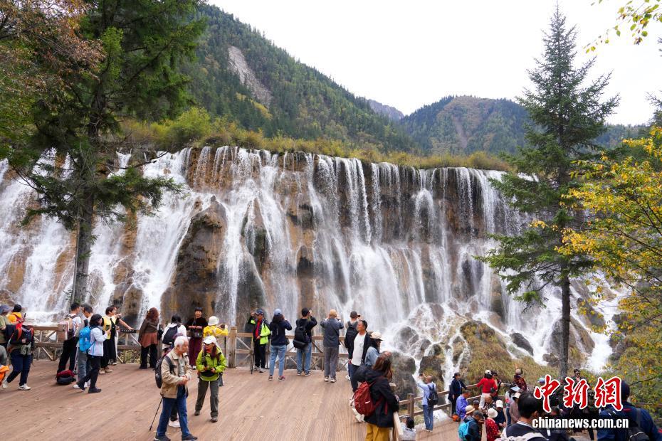 10月13日,世界自然遺產地九寨溝景區秋景如畫,吸引眾多游客觀光游玩。