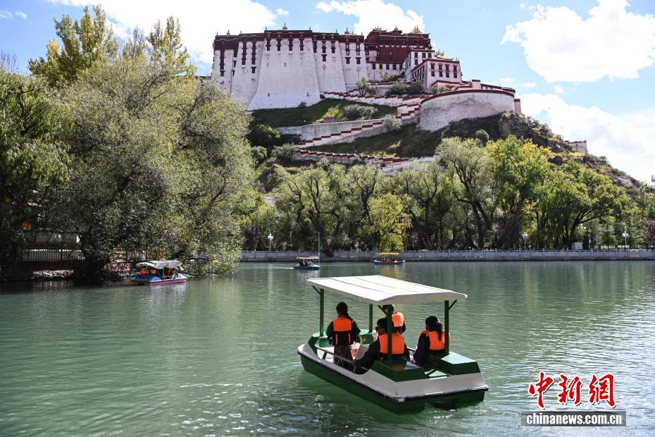 10月6日,西藏拉薩市宗角祿康公園人氣爆棚。人工湖畔游船碼頭前,游客有序排隊登船,各色游船在碧波上緩緩前行,與岸邊的秋景、遠處的布達拉宮相映成趣。據悉,國慶假期,游船接待量較平日增長近三成,成為市民游客親近自然、歡度國慶的熱門選擇。中新社記者 貢嘎來松 攝