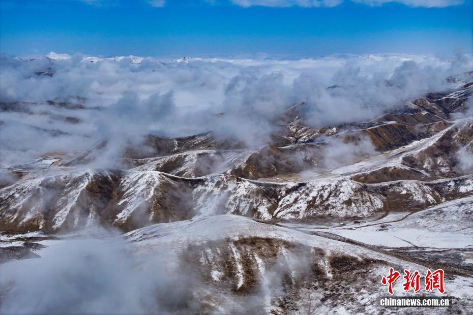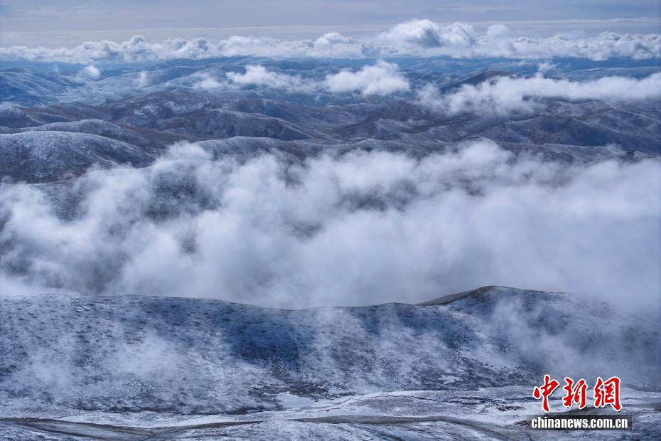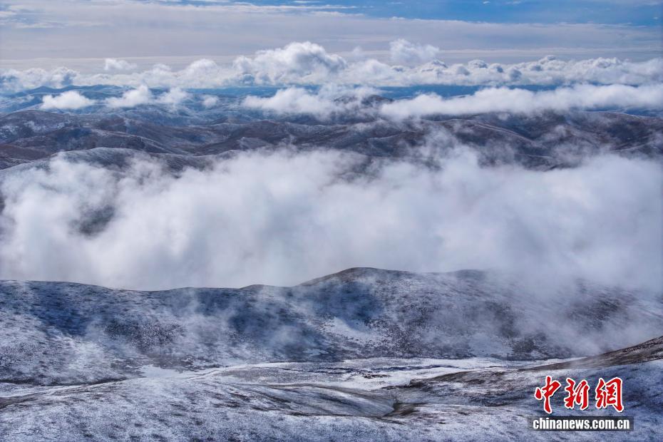 10月17日,一場降雪過后,平均海拔4200米以上的青海省果洛藏族自治州達日縣出現云海景觀,從空中俯瞰,落雪的山巒在云霧中若影若現,宛如壯闊水墨畫卷。