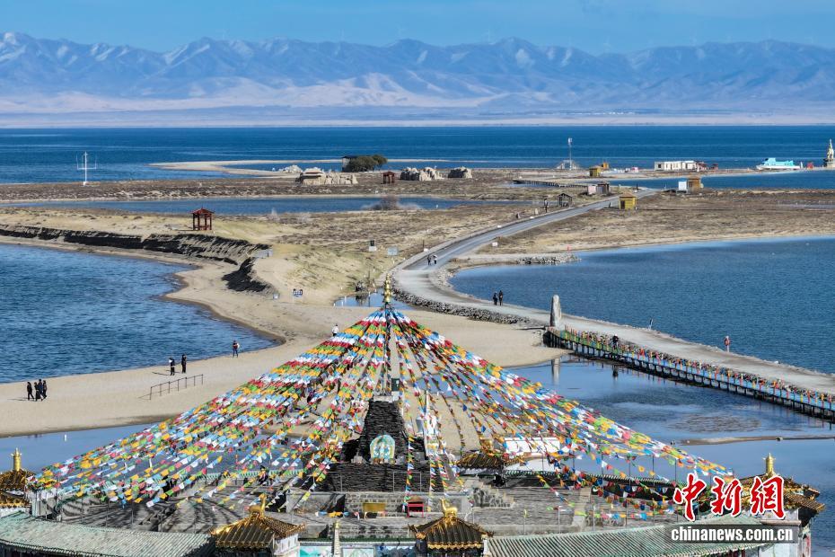 10月22日,航拍青海省海南藏族自治州共和縣青海湖秋日景色。(無人機照片)中新社記者 馬銘言 攝
