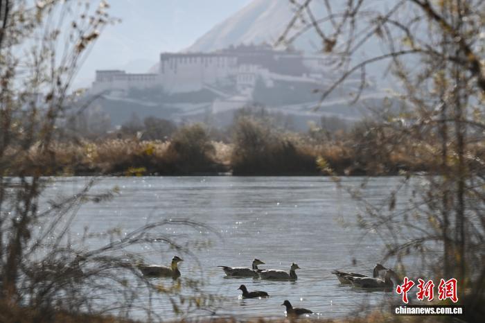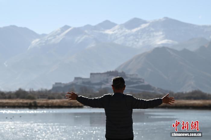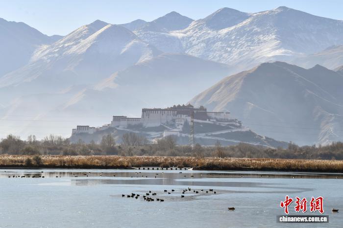 2025年12月9日,世界海拔最高的城市內陸天然濕地——拉薩拉魯濕地國家級自然保護區盡顯冬日盛景。這片總面積12.2平方公里的“拉薩之肺”,初冬時節蘆葦泛金,赤麻鴨、斑頭雁等候鳥在此嬉戲覓食。遠處布達拉宮巍然矗立,周邊雪山皚皚,自然生態與人文景觀交相輝映,構成一幅兼具壯闊與靈動的高原畫卷,彰顯著拉薩人與自然和諧共生的生態之美。圖為拉薩市民在拉魯濕地晨練。中新社記者 貢嘎來松 攝