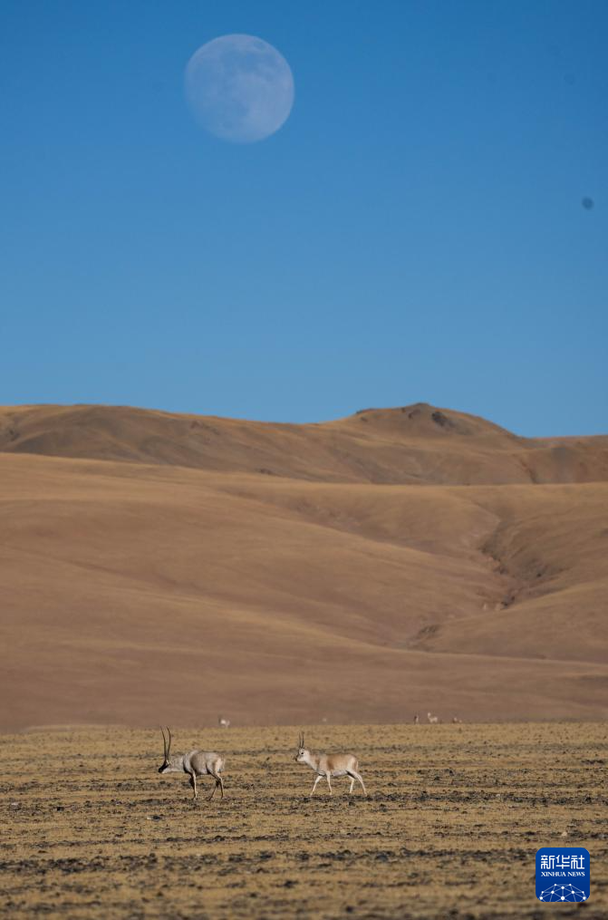 這是在羌塘國家級自然保護(hù)區(qū)拍攝的兩頭雄性藏羚羊(12月3日攝)。新華社記者 郭昱 攝
